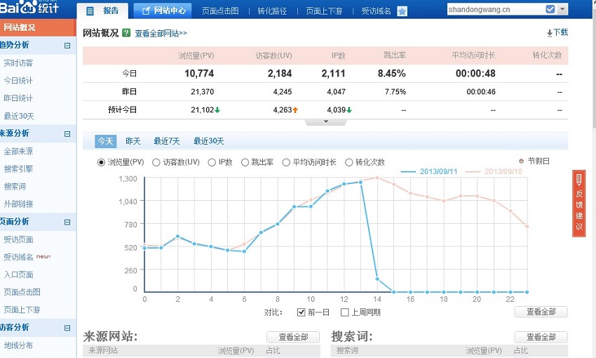 您可以看到这个时间段的浏览量、访客数、IP数、跳出率、平均访问时长、通过哪个平台找到网站、新老客户比例、PC端访客数量、移动端访客数量、搜索词、外部链接等;
